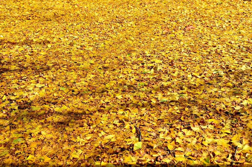 온통 바닥을 뒤덮고 있는 노란 은행 잎과 은행들~