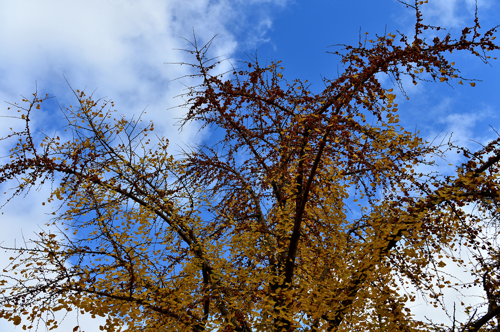 잎이 많이 떨어진 가지에는 아직도 은행이 주렁주렁 매달려 있다.