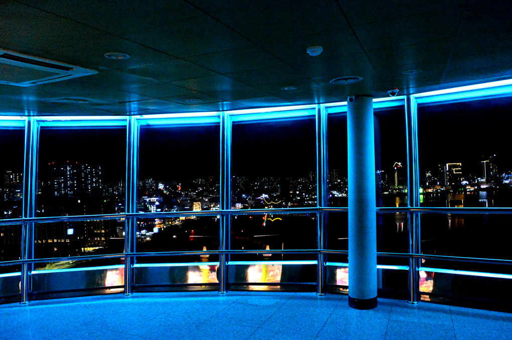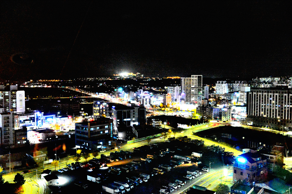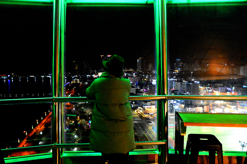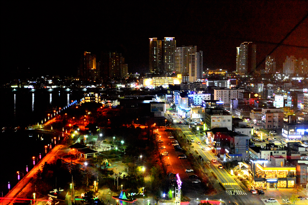 탑의 창을 통해 본 속초의 야경이다.