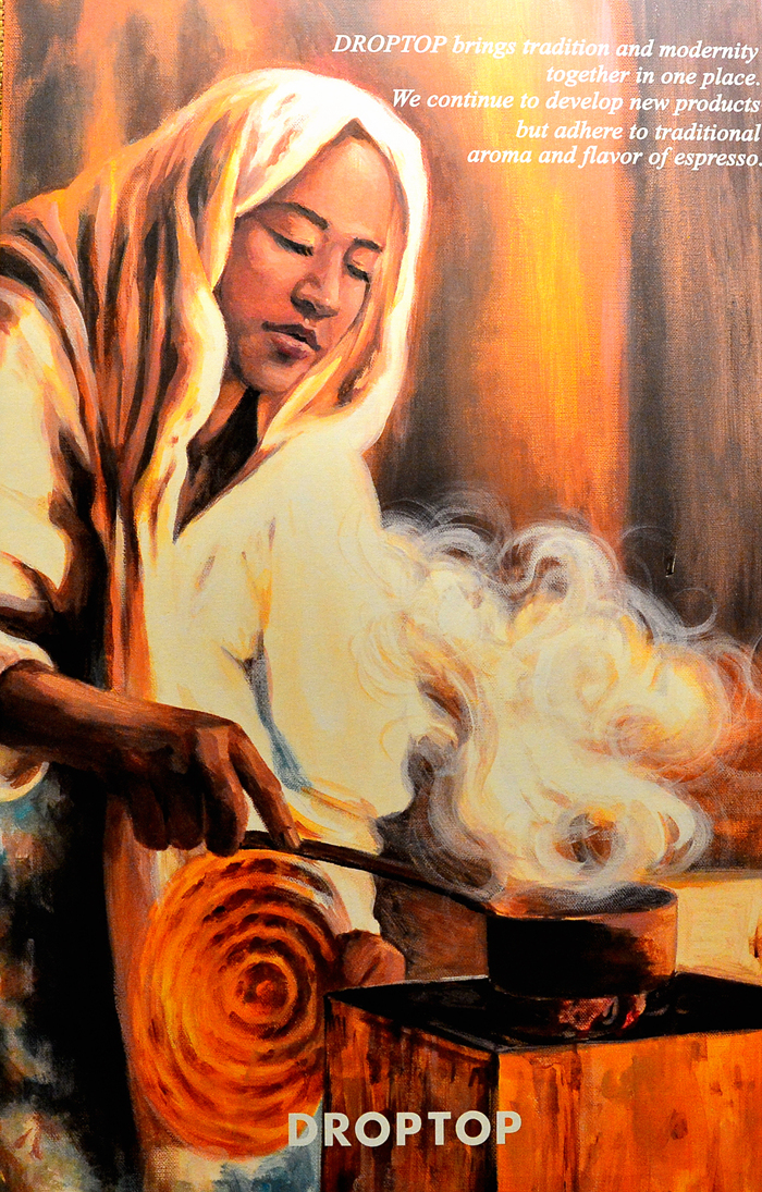 열심히 로스팅하고 있는 여인의 모습이 에티오피아에서의 커피 세레머니를 떠오르게 한다.