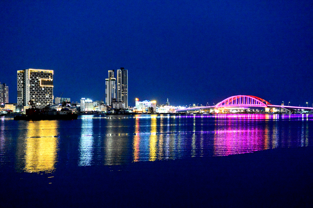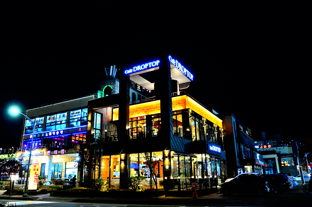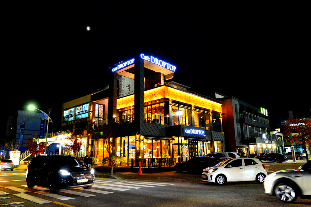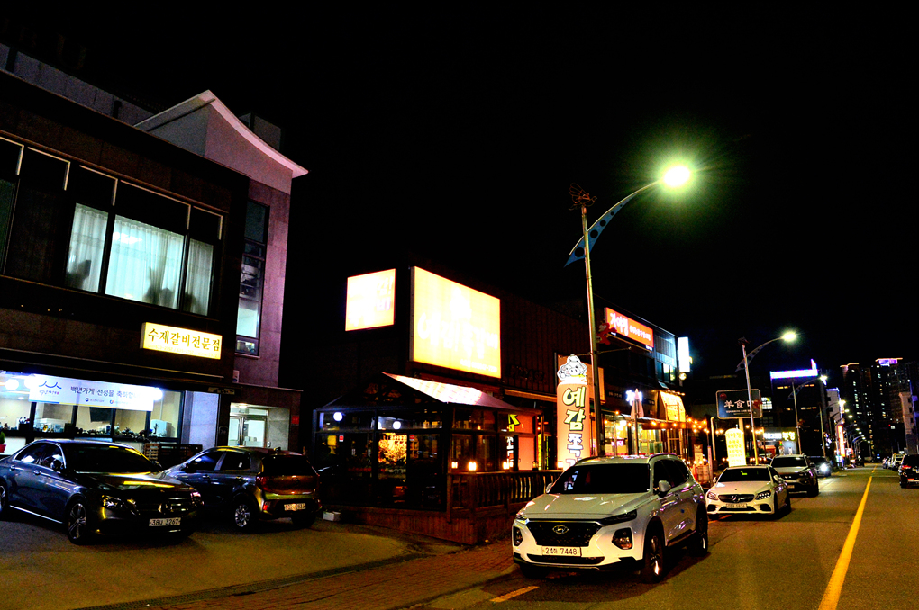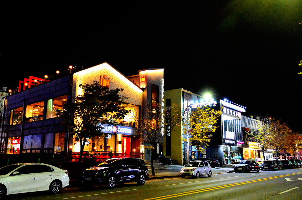 대로변의 깔끔한 건물들이 멋진 야경을 연출하고 있다.