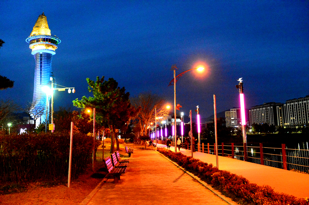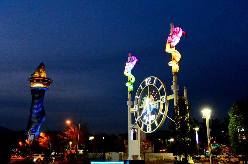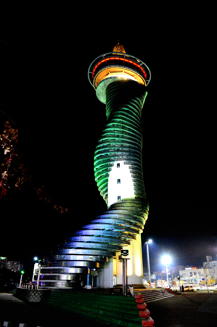 전망대가 있어 멀리 동해바다까지 가까이 볼 수 있는 이 엑스포 상징탑은 청룡과 황룡의 전설을 형상화한 조형물이라고