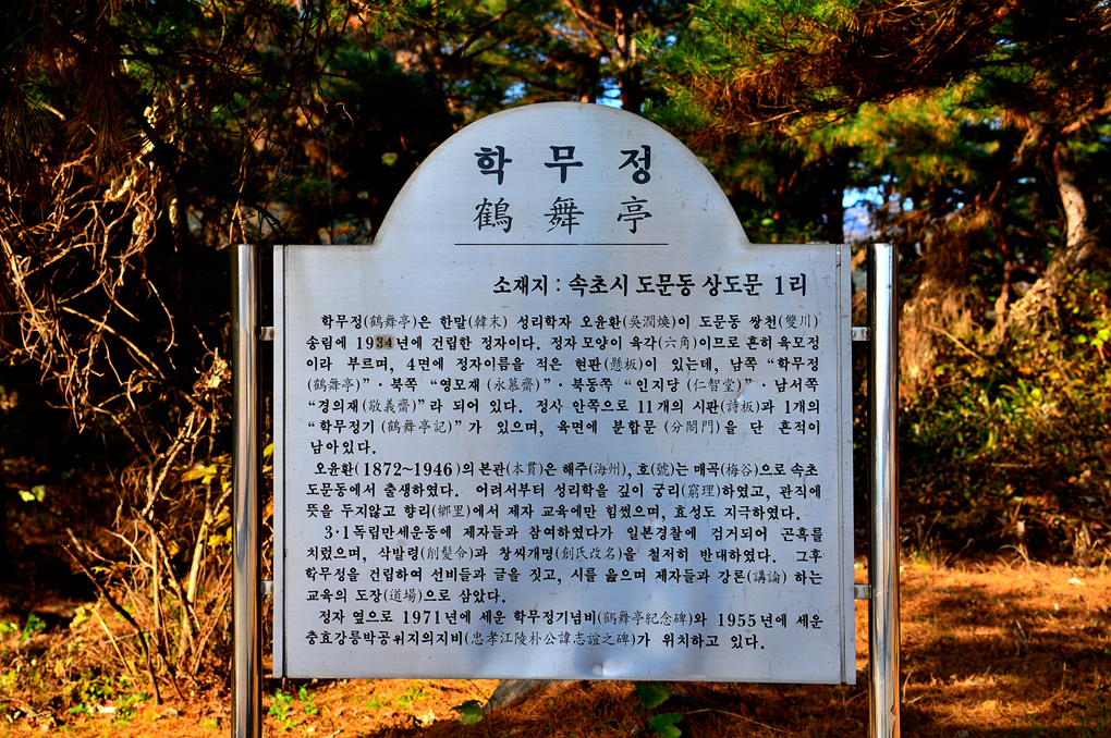 학무정의 유래를 적어 놓은 안내판이다.