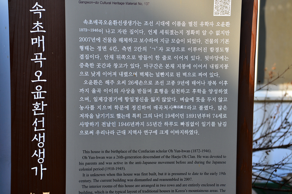 이곳의 저명한 인사 오윤환 선생의 생가라고 한다.