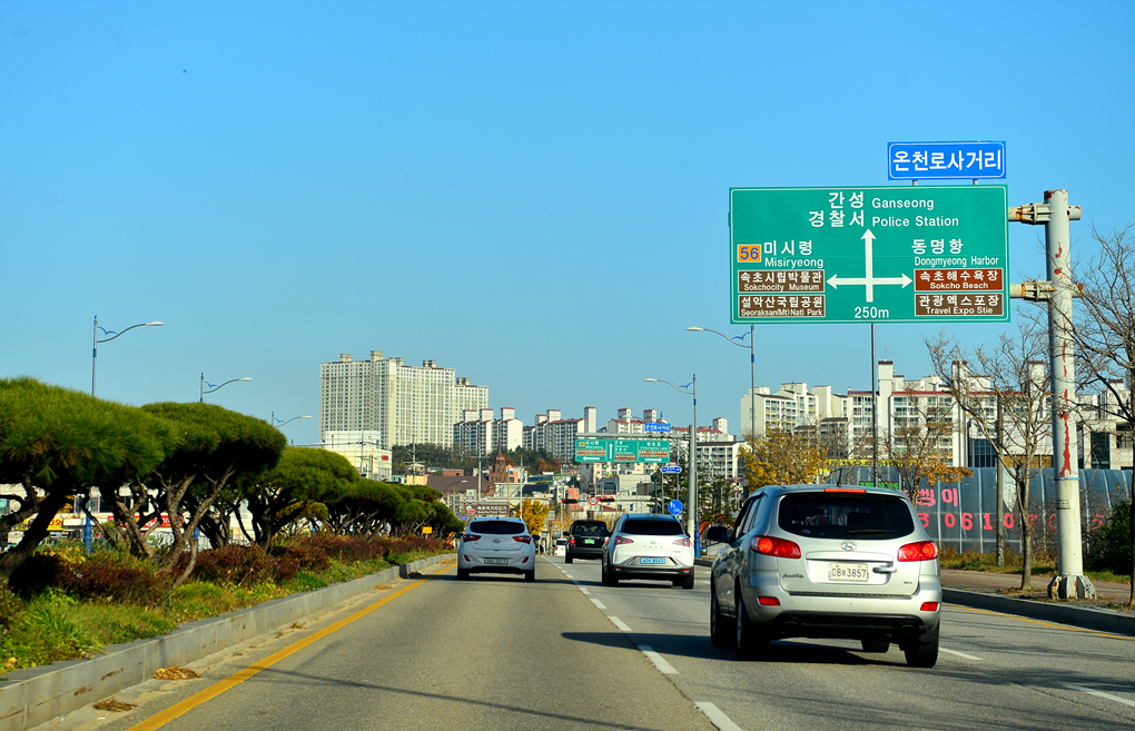 속초 외곽으로 이어지는 도로를 따라서 다음 행선지로 향한다.