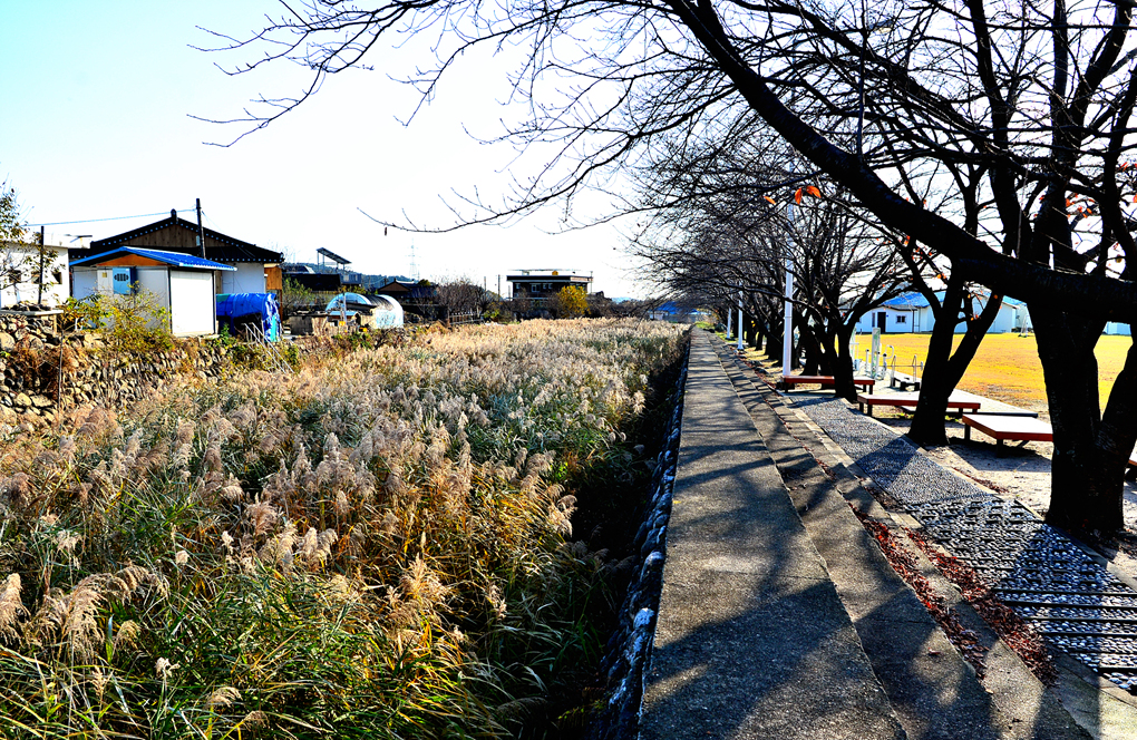 학무정에서 다시 마을로 들어서는 곳에 작은 개울과 함께 울창한 갈대밭이 있다.