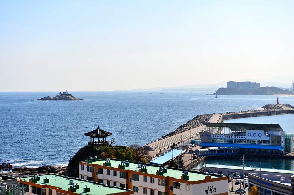 속초항 방파제와 영금정 해돋이 정자 모습이다.