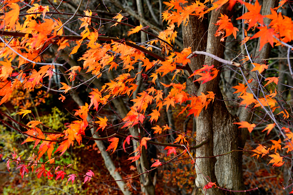 떠나가는 가을이 아쉬운 듯 빨간 단풍잎이 가지를 꼬옥 붙들고 있다.