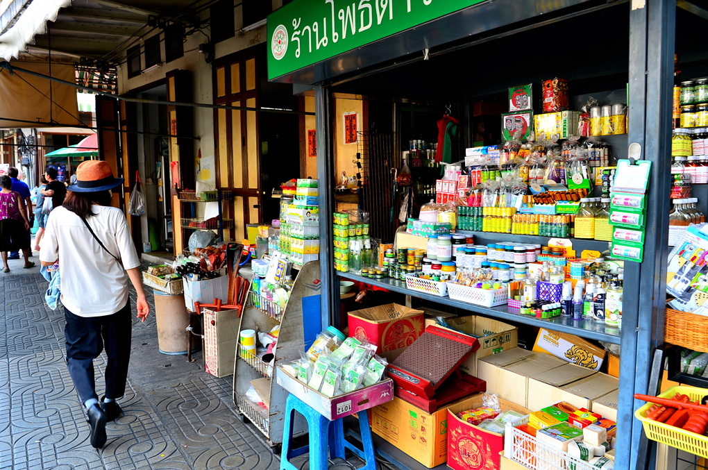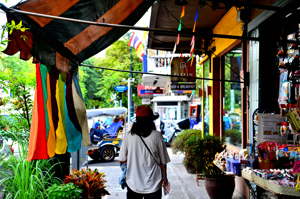이 상점들이 위치한 거리 안쪽으로 조금만 걸어가면 방콕 시내를 관통하는 짜오프라야 강을 볼 수 있고 새벽 사원 등 유명