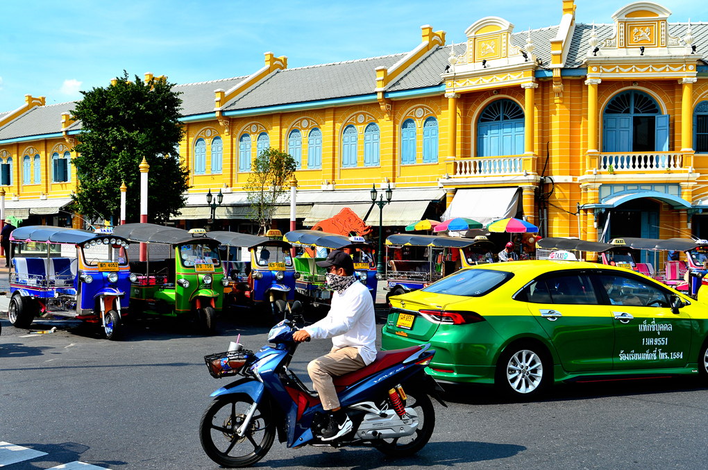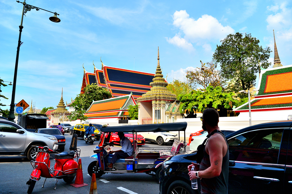 거리 반대편으로 왓 포의 지붕들이 보이는 걸 보니 우리의 목적지 사남차이 역도 가까워졌나 보다.