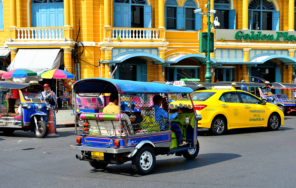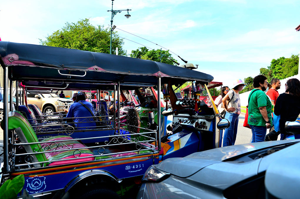 Golden Place 앞에 늘어서 있는 많은 탈 것들이다.