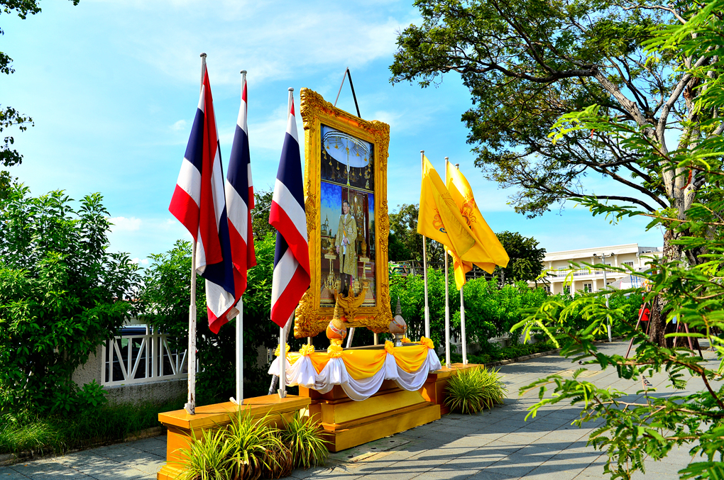 보도에는 커다란 태국 국왕의 사진도 놓여 있다.