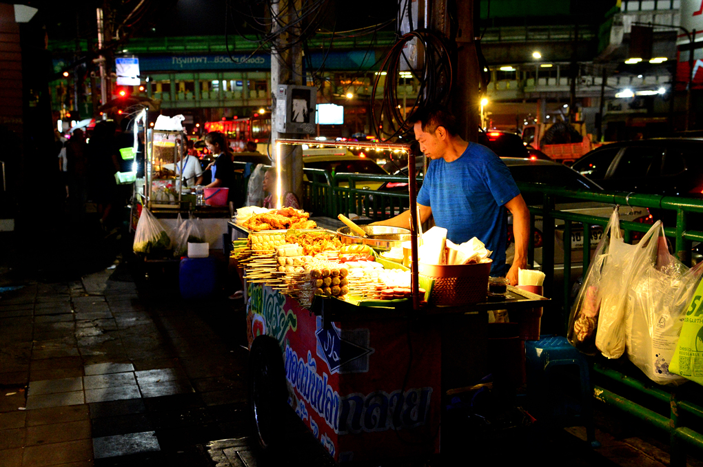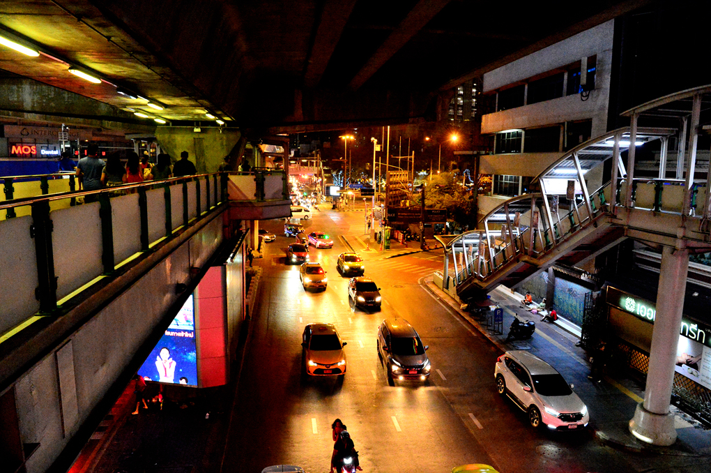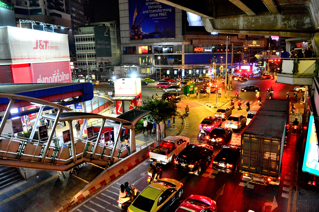 역사를 빠져나온 우리 앞에 펼쳐진 여느 때와 다름없는 활기찬 방콕의 밤거리 모습이다.