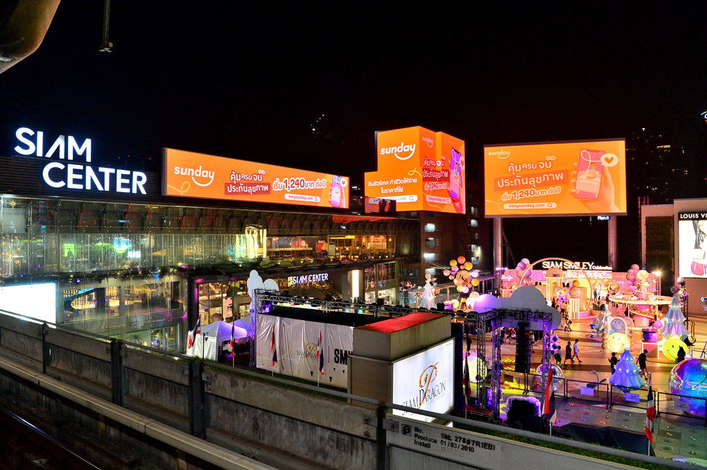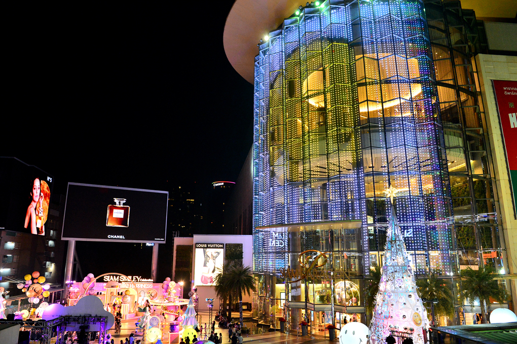 환승역 시암에서 보이는 시암 센터와 시암 파라곤 모습이다.