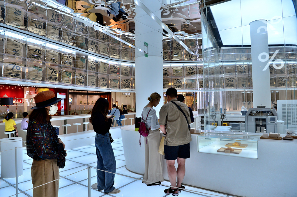 매장의 한쪽 벽면을 장식하고 있는 원두 모습이다.