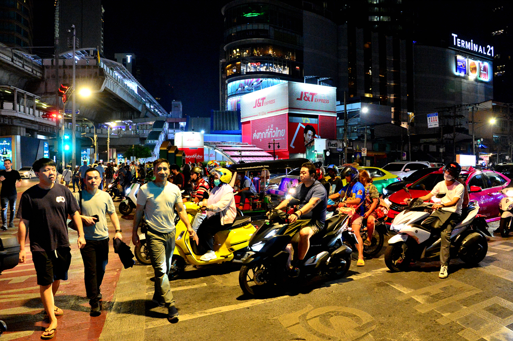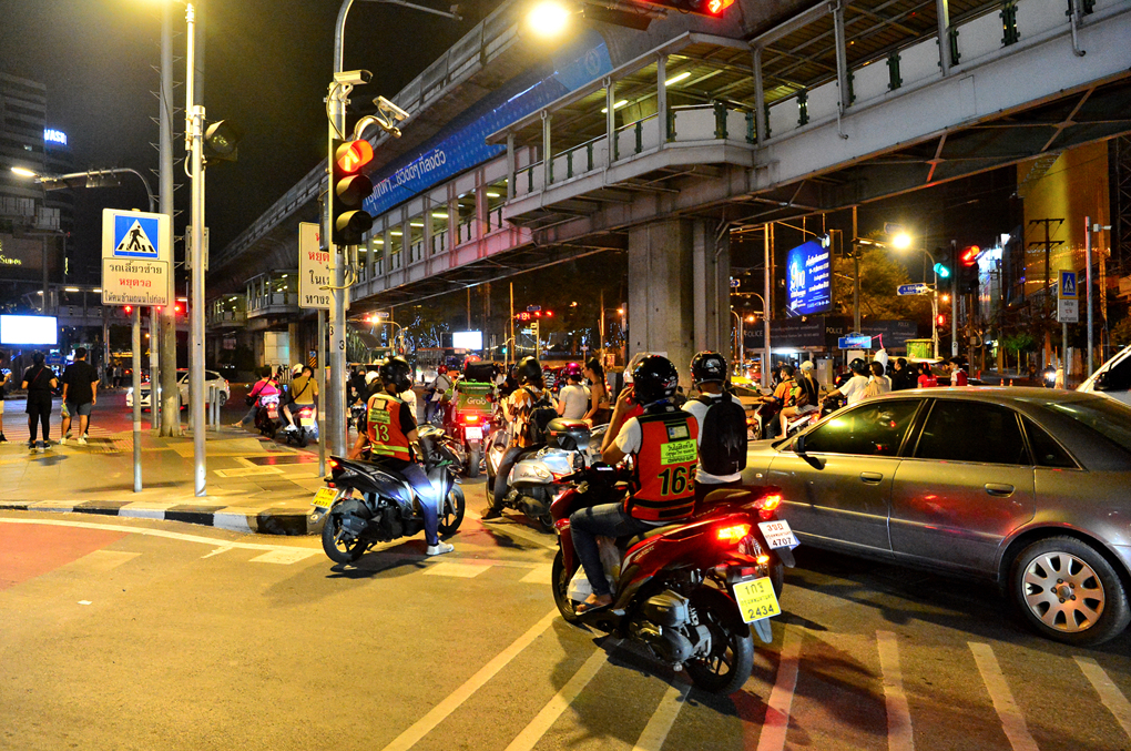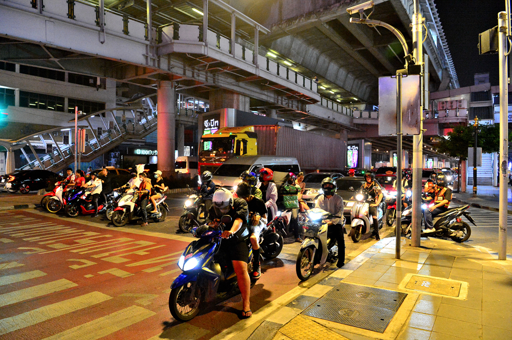 신호 대기를 하고 있는 방콕의 젊은이들 모습이다.