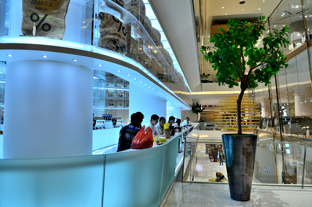 매장은 온통 흰색으로 치장되어 있고, 매장을 구분하는 일체의 벽도 없는 그야말로 완전히 오픈된 공간으로 구성되어 있다.