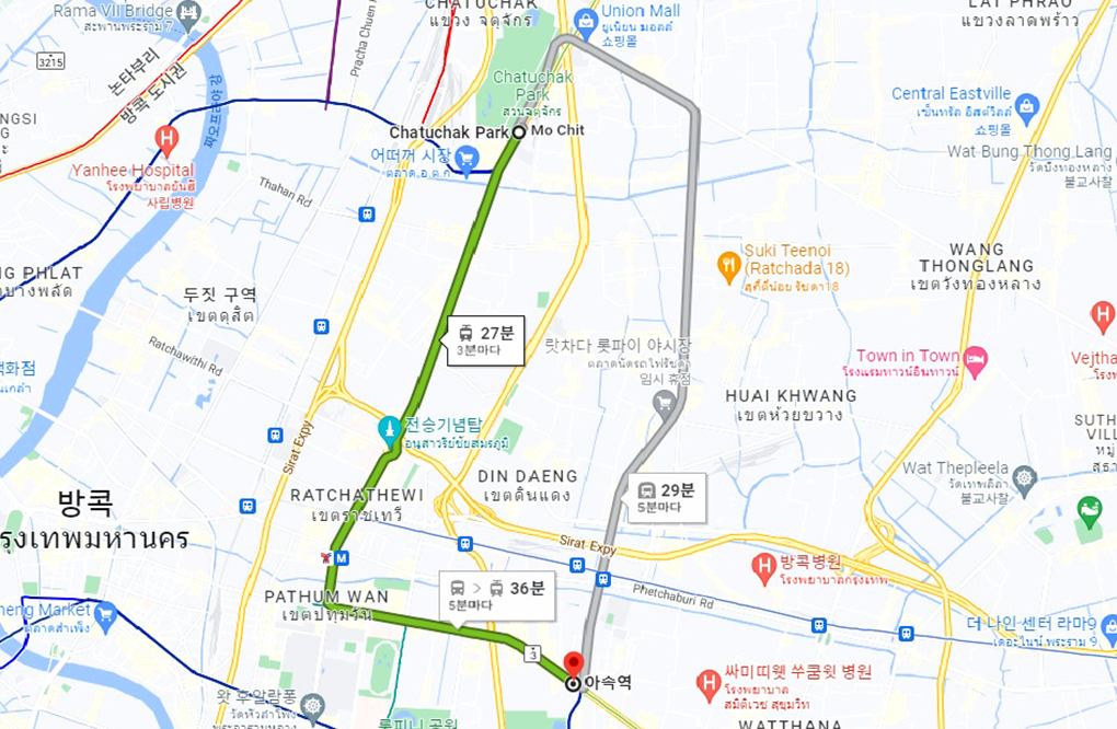 모칫 역에서 짜뚜짝 주말 시장으로 가는 길목에는 짜뚜작 공원이 있고, 그 공원 옆길을 따라서 시장으로 향한다.