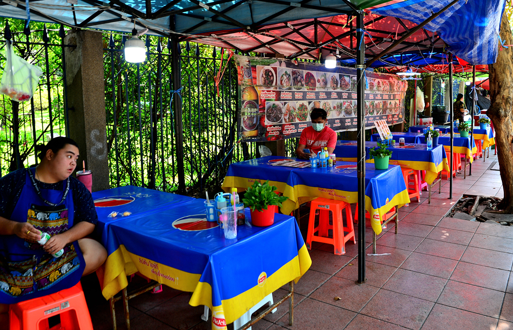 도로변에도 음식점이 들어서 있는데, 손님은 없고 손님맞이 상차림만 줄지어 있다.