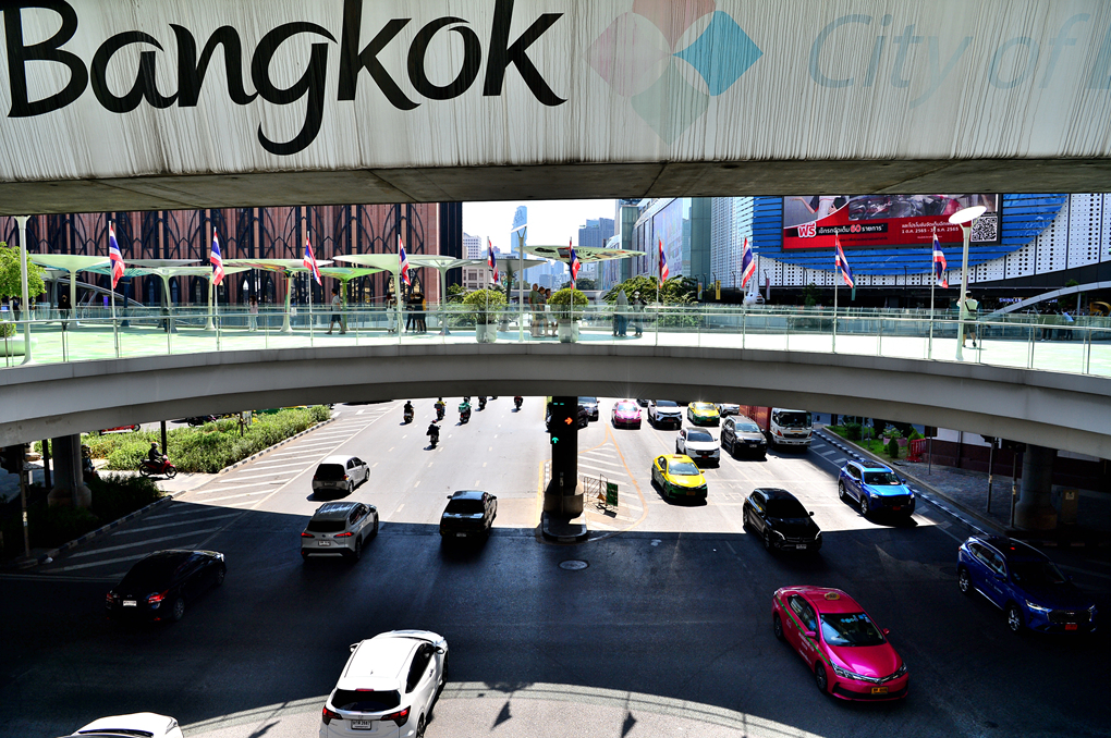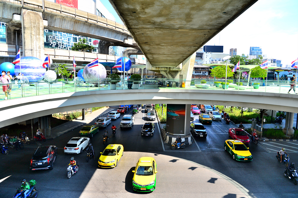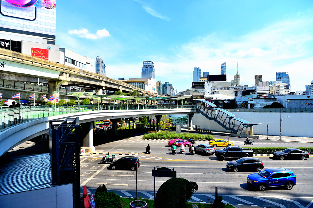 OneSiam Skywalk에서 바라본 도로 모습이다.