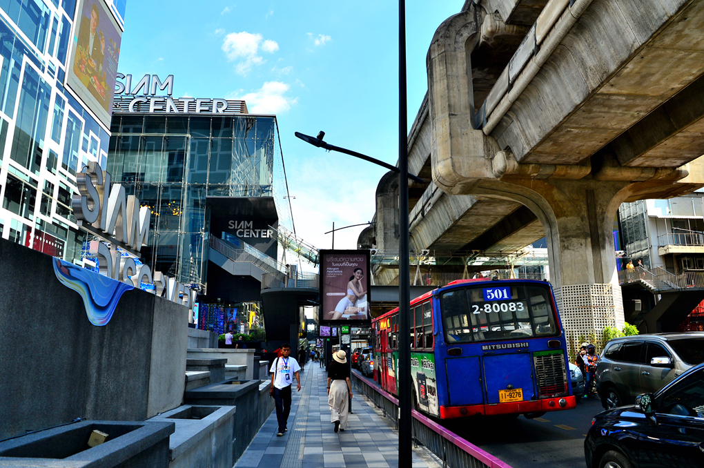 시암 디스커버리 센터 Siam Discovery Center를 나와서 도로로 내려선 모습이다.