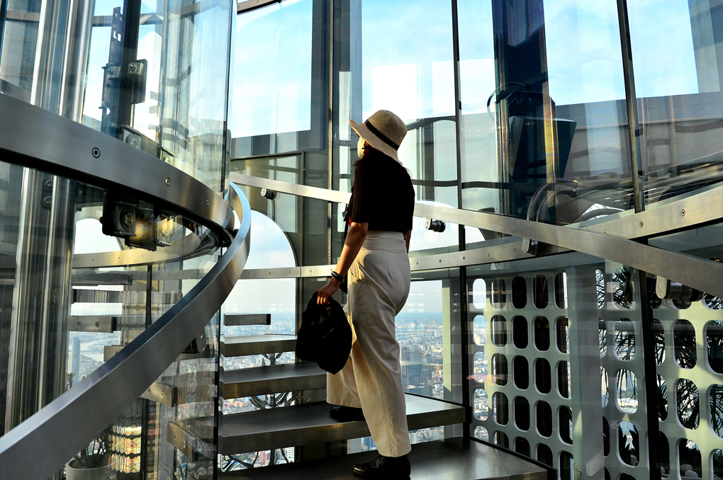 더 높은 전망대로 올라갈 수 있도록 만들어 놓은 외벽을 유리로 마감해 놓은 계단이다.