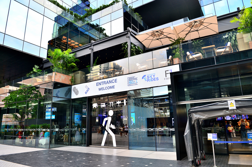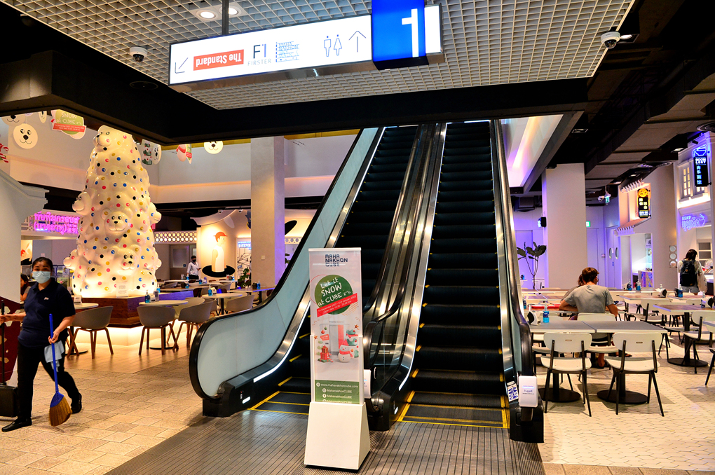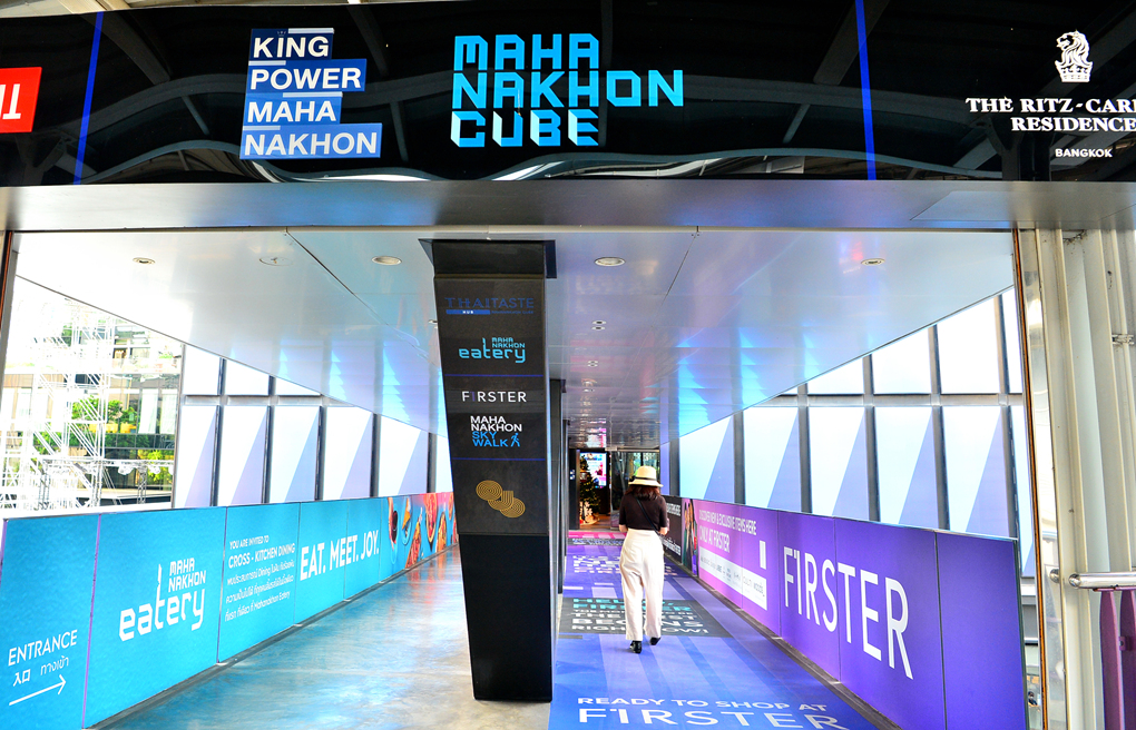 역에서부터 이어진 길에서 에스컬레이터를 타고 내려오니 곧바로 킹 파워 마하나컨 건물 입구가 나타난다.