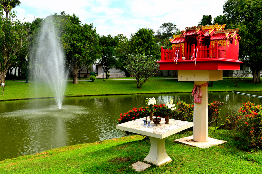 이 건축물은 1876년 출라롱콘 왕이 외부 연못 중앙에 지은 4개의 현관과 첨탑이 있는 태국식 파빌리온이라고 한다.
