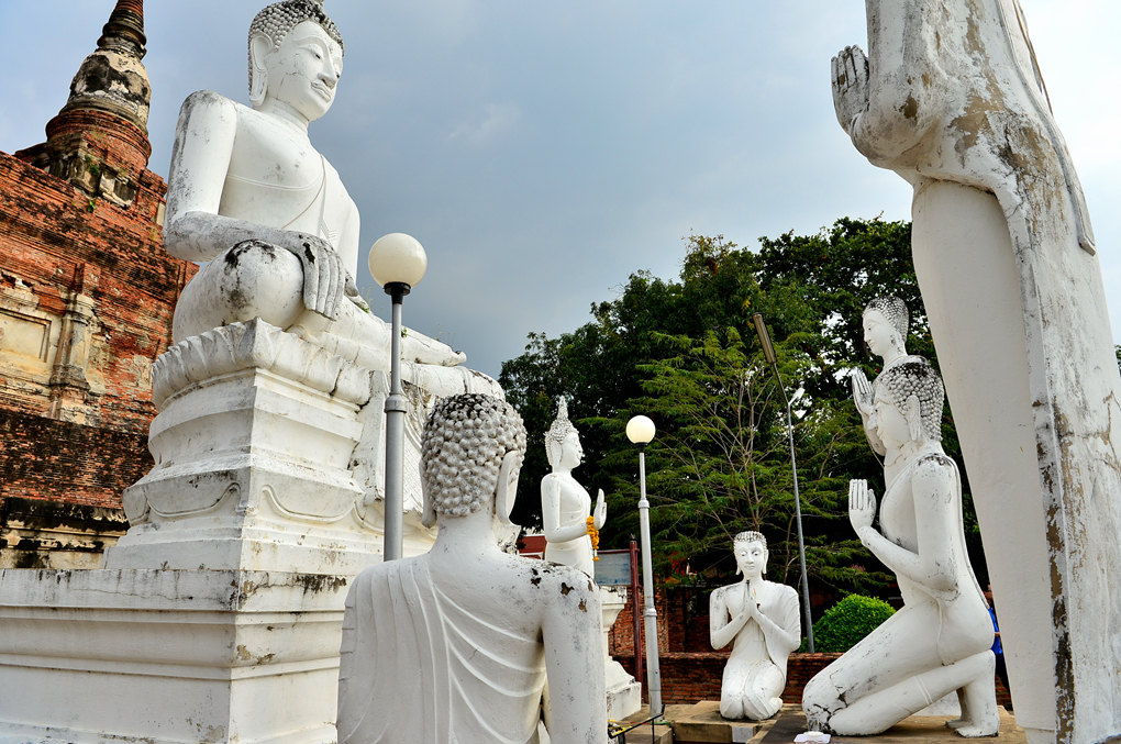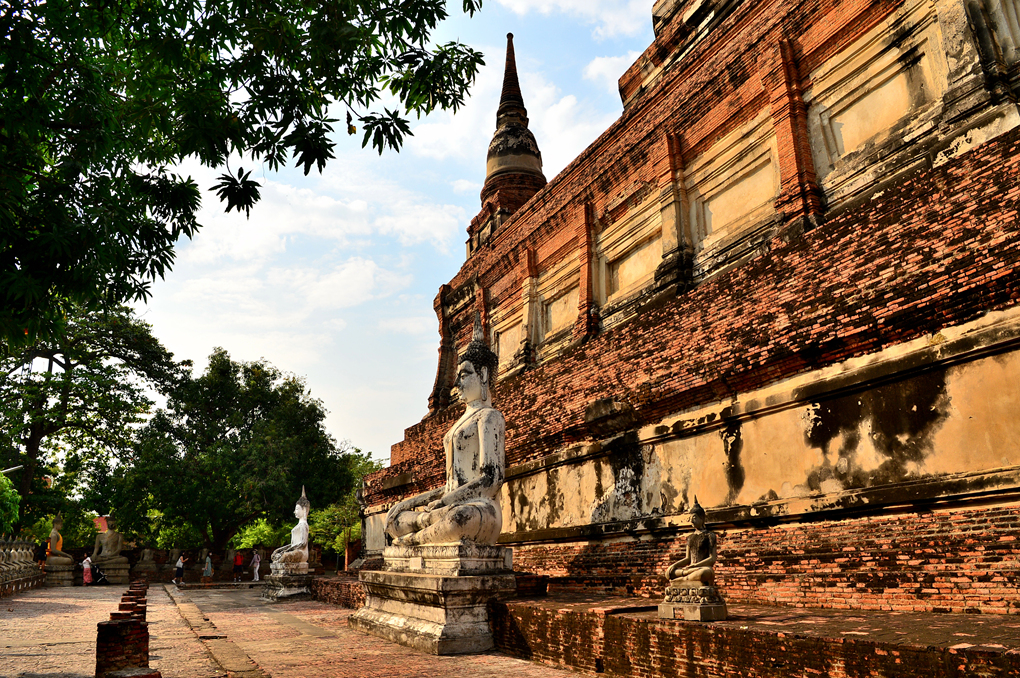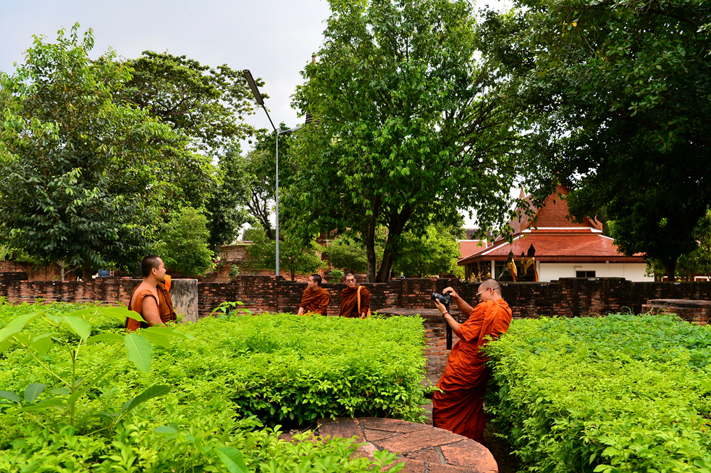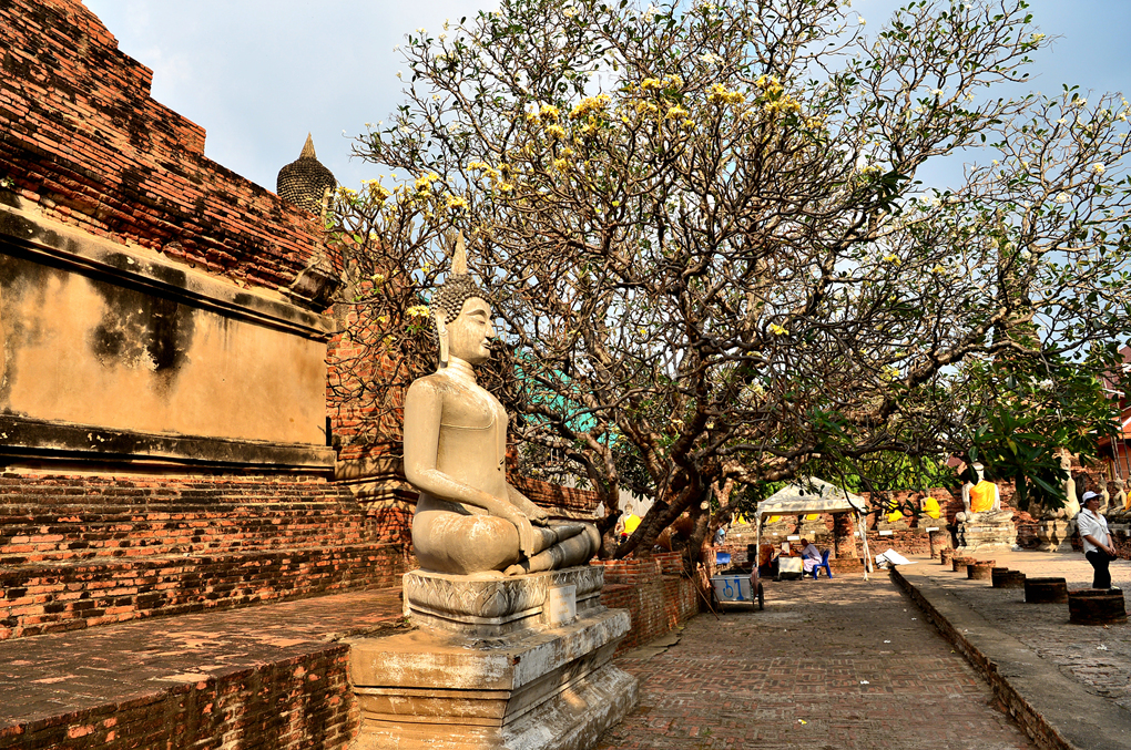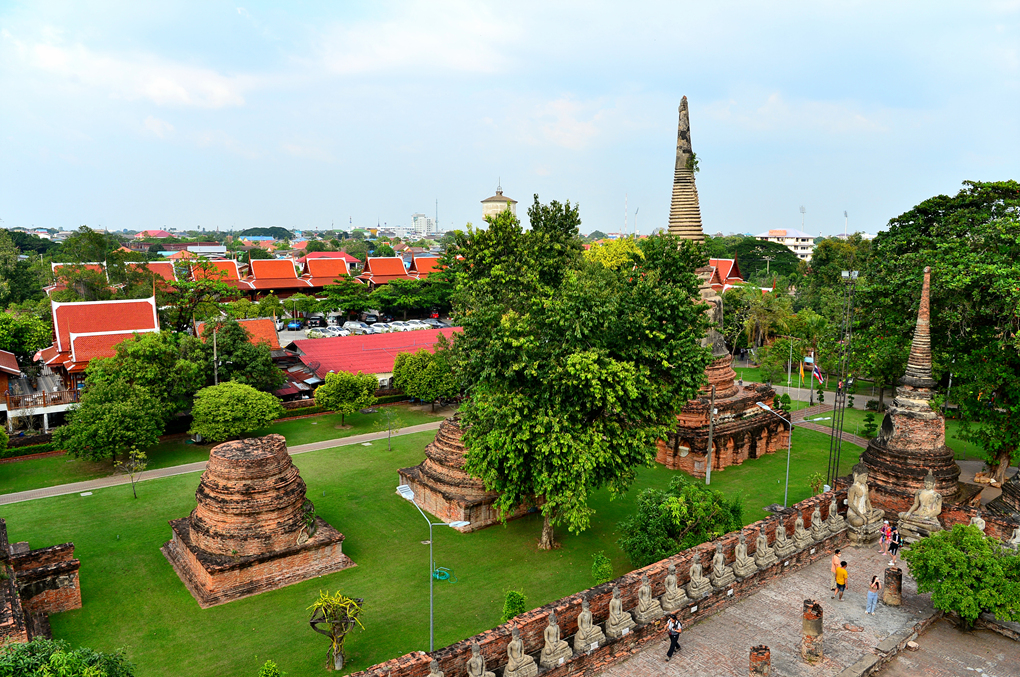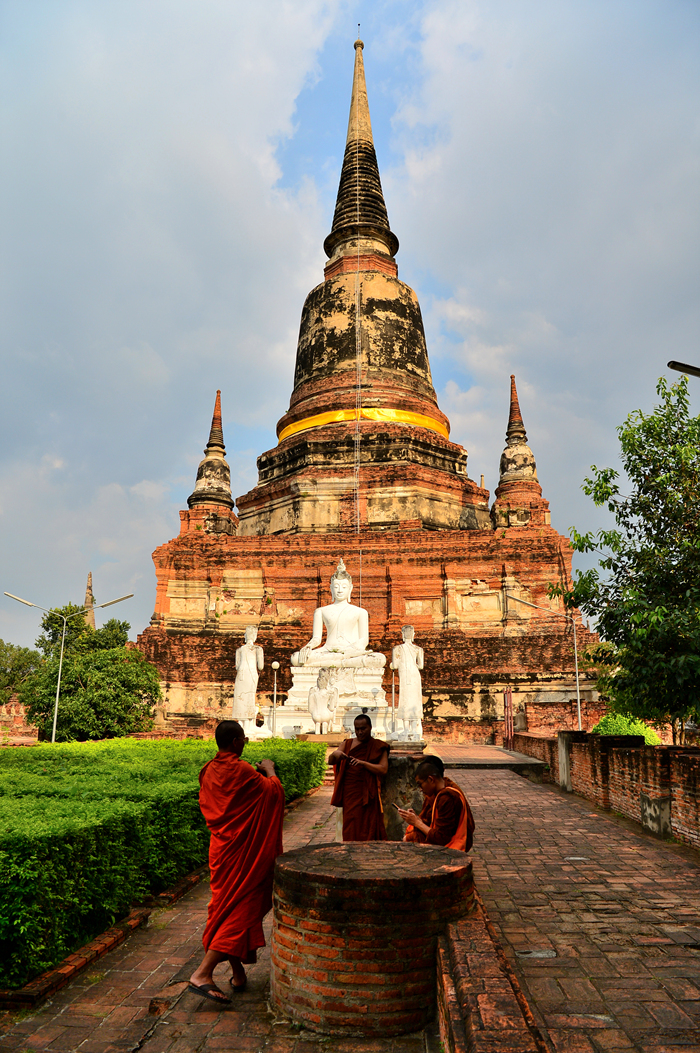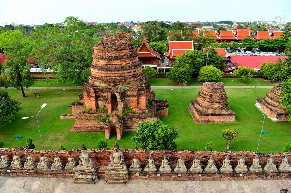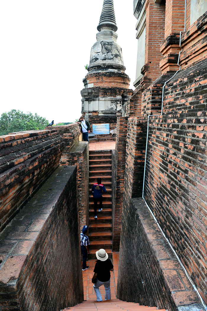 왓 야이 차이 몽콘 Wat Yai Chai Mongkhon 사원의 중앙부에 위치한 거대한 쩨디의 회랑에서 담아본 쩨디 주변 모습들이다