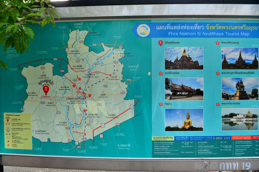 아유타야의 대표적인 유적지들을 보여주는 안내판이다.