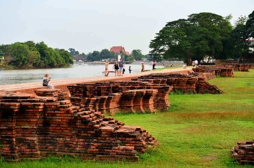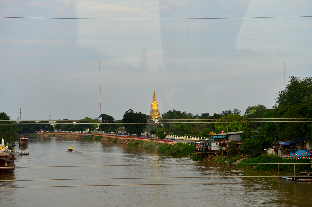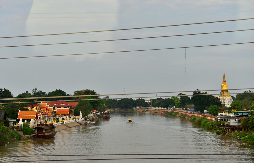 다음 행선지로 향하는 투어 버스 차창으로 아유타야 유적지를 둘러싸고 있는 짜오프라야 강이 지나친다.