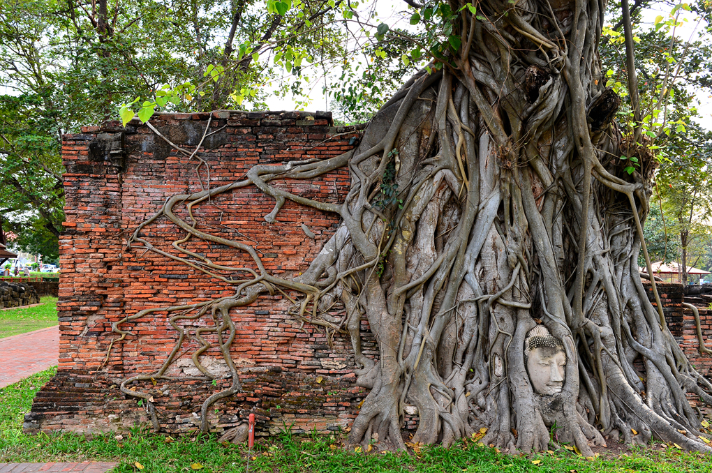 쁘랑과 위한, 쩨디 등이 상당 부분 허물어진 상태임에도 왓 프라 마하탓이 아유타야에서 가장 유명한 사원으로 꼽히는 이유