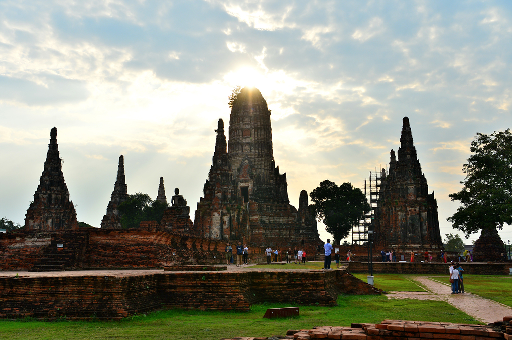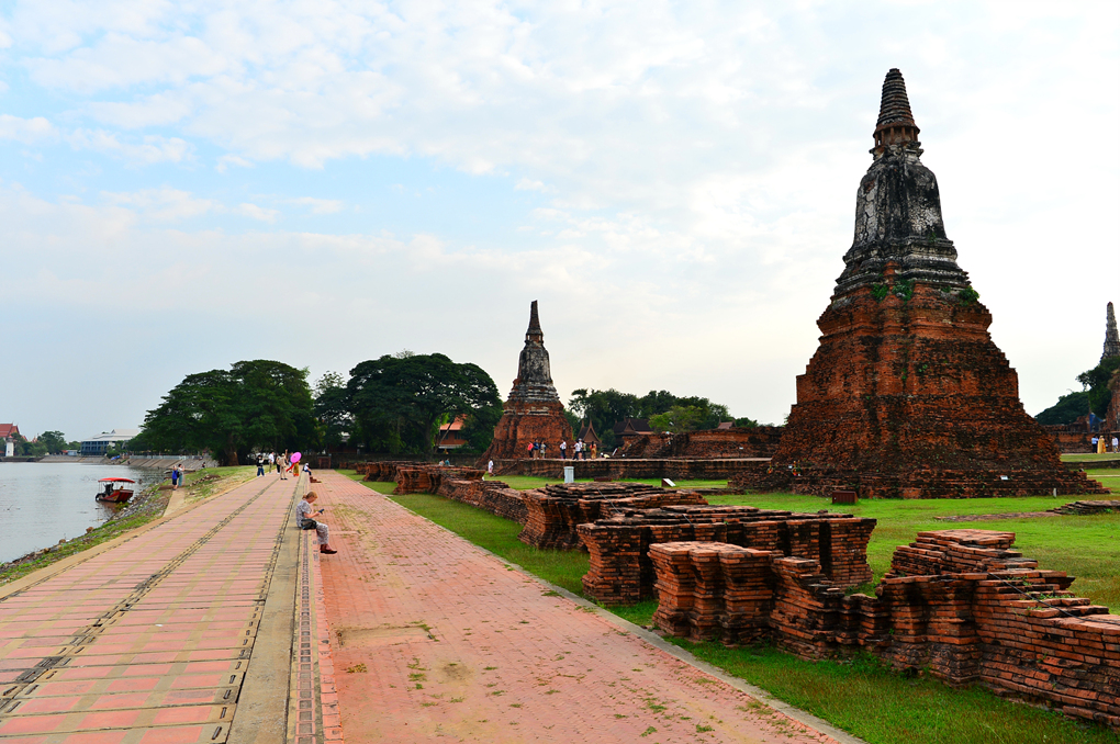 짜오프라야 강변에서 본 석양의 왓 차이 왓타나람 Wat Chai Wattanaram 모습이다.