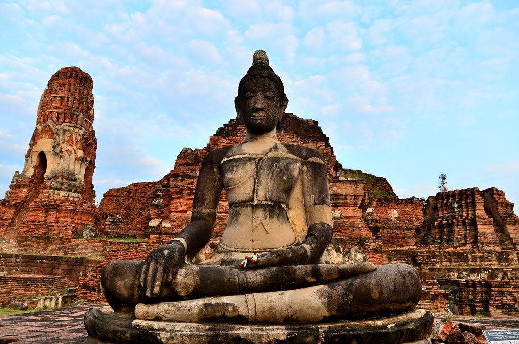 14세기 아유타야 2대 왕인 라미쑤언 Ramesuan 왕 때 석가모니의 사리를 보관하기 위해 세워졌다는 왓 프라 마하탓 Wat