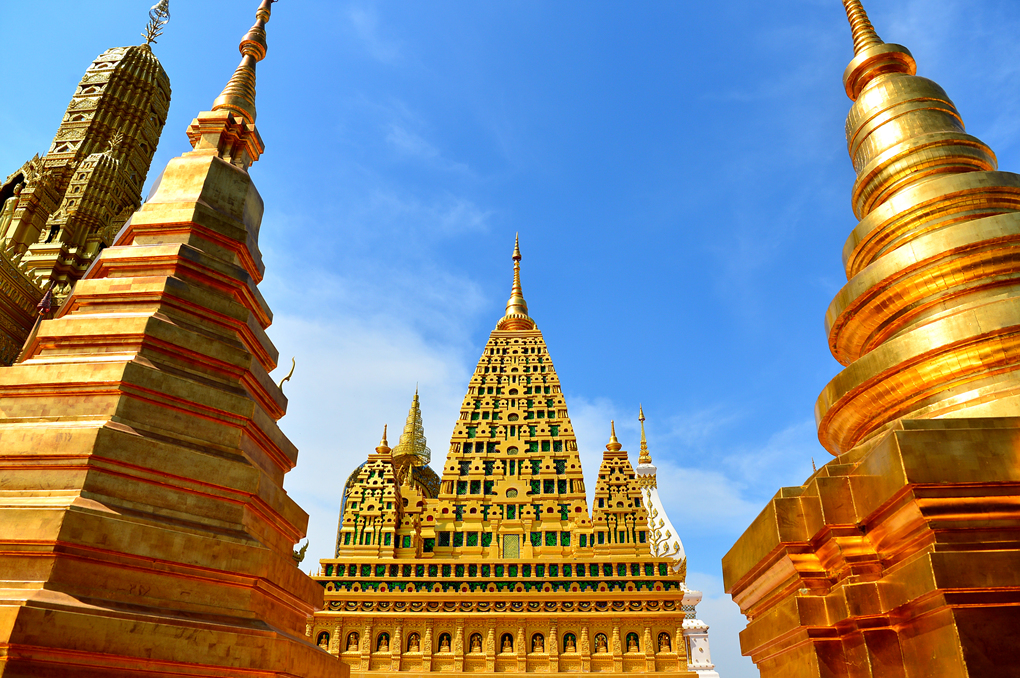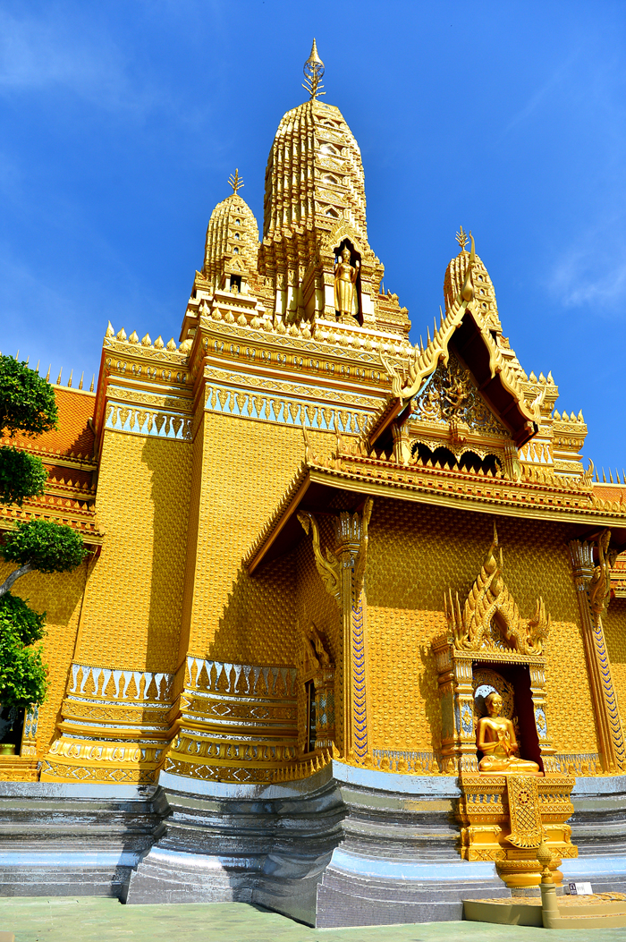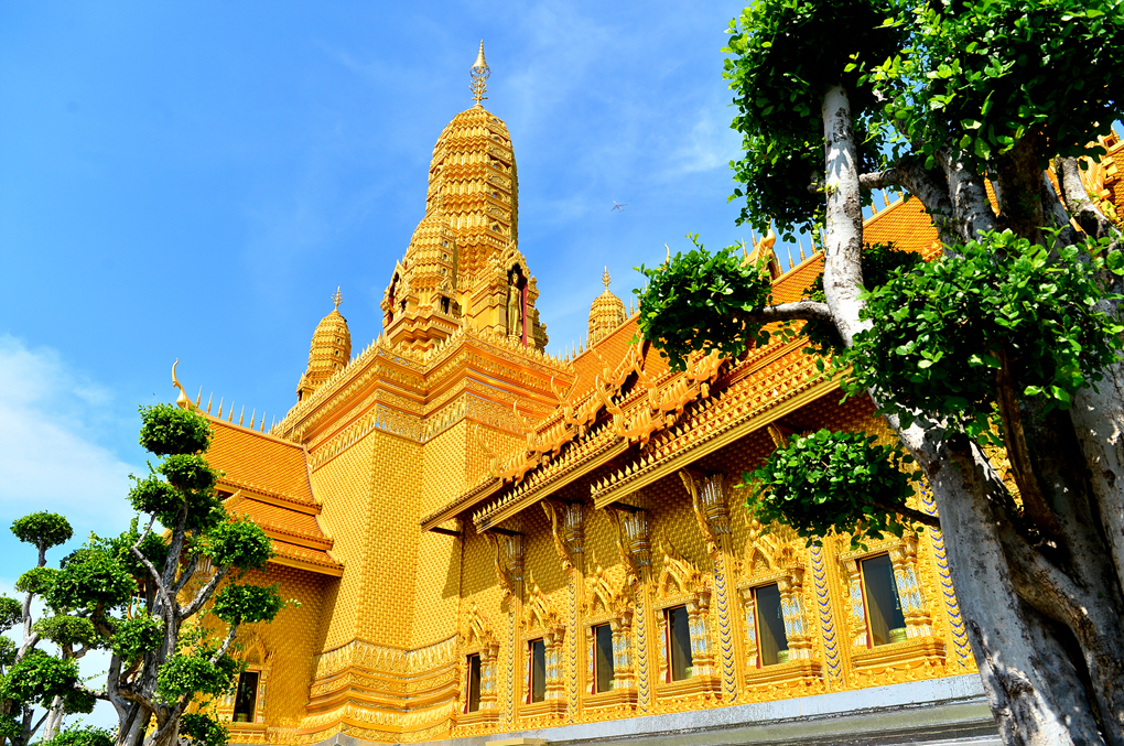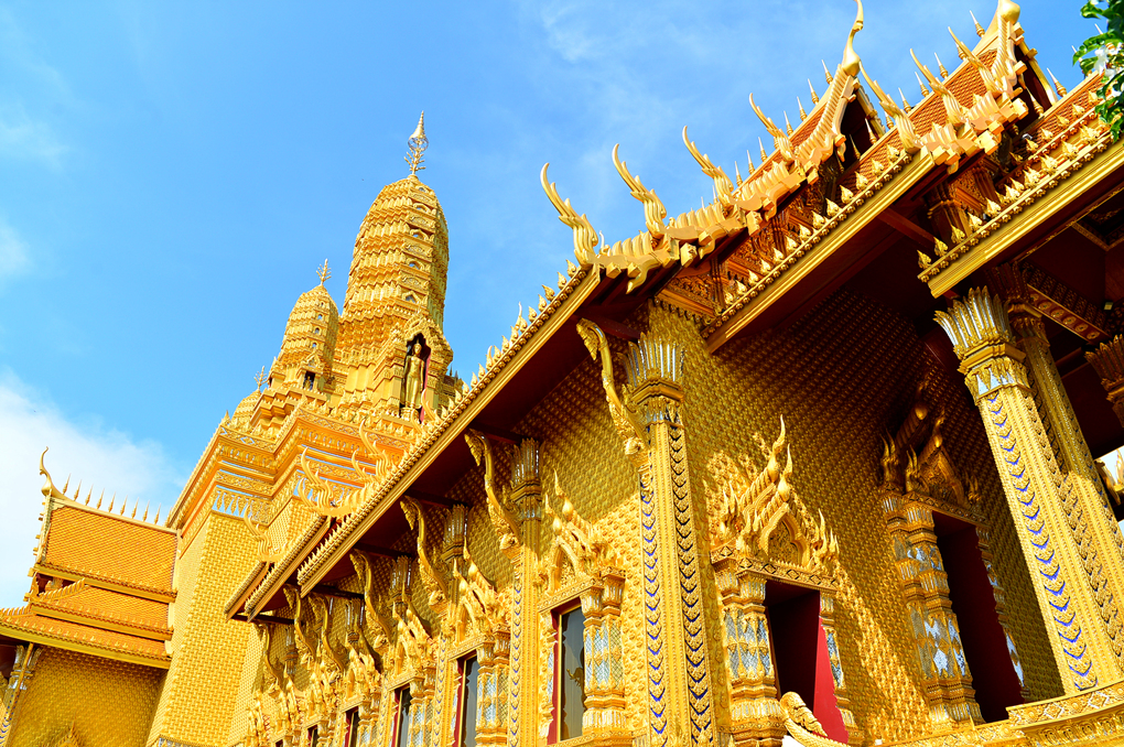 황금빛으로 찬란하게 빛나는 사원 모습이다.