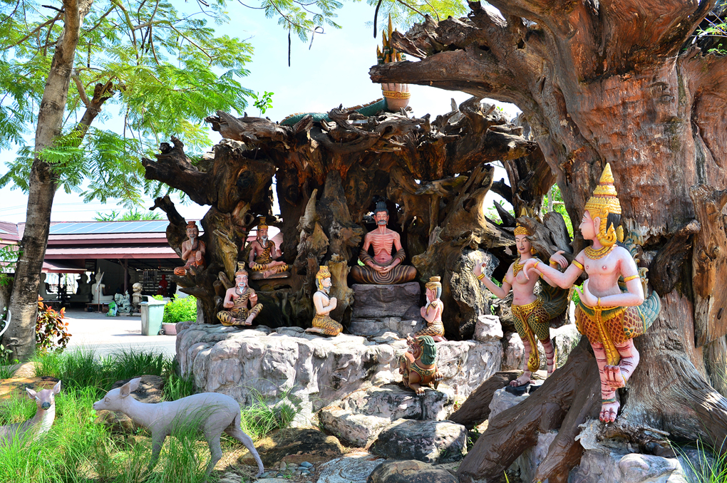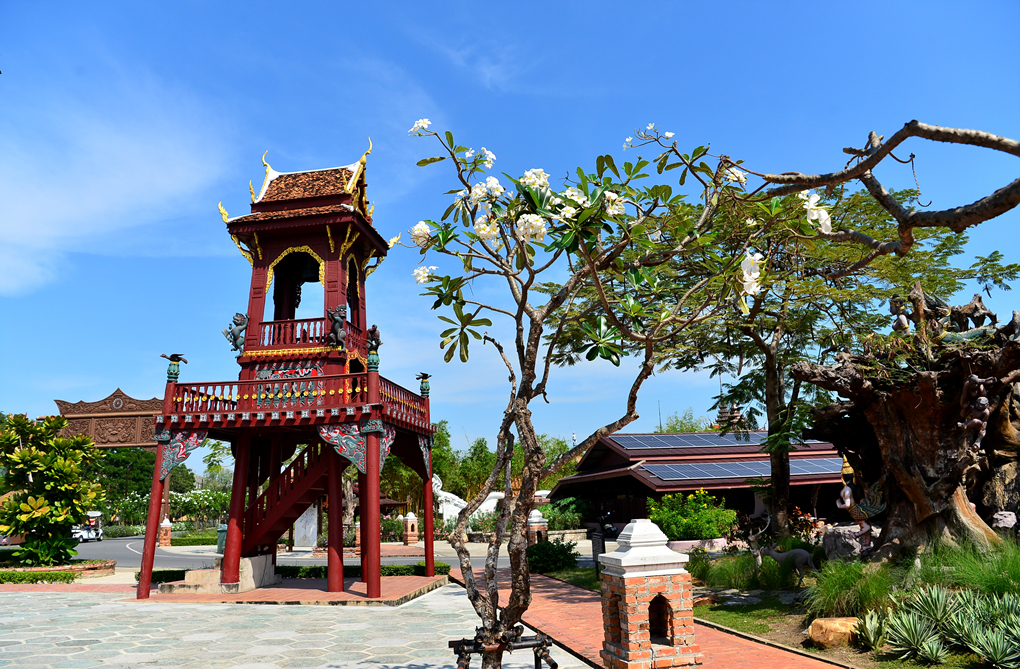 그는 의도적으로 넓은 땅을 이용하여 태국 지도의 모양에 따라 경계를 만들고 고대 유적지의 복제품을 제공함으로써, 사람