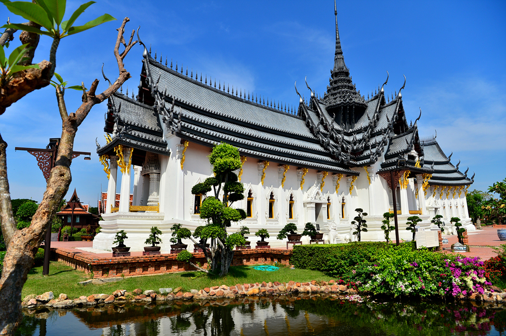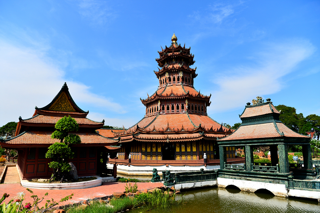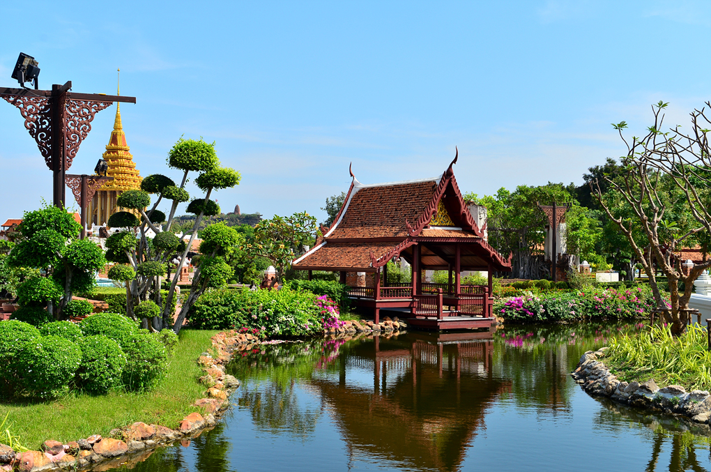 그리고 수코타이, 아유타야 왕조의 왕궁과 사원도 재현되어 있는데, 특히 15세기 아유타야 왕조의 산페치 궁전의 4층 지붕