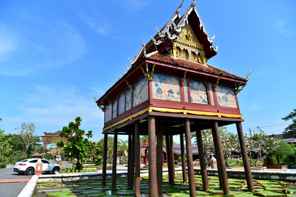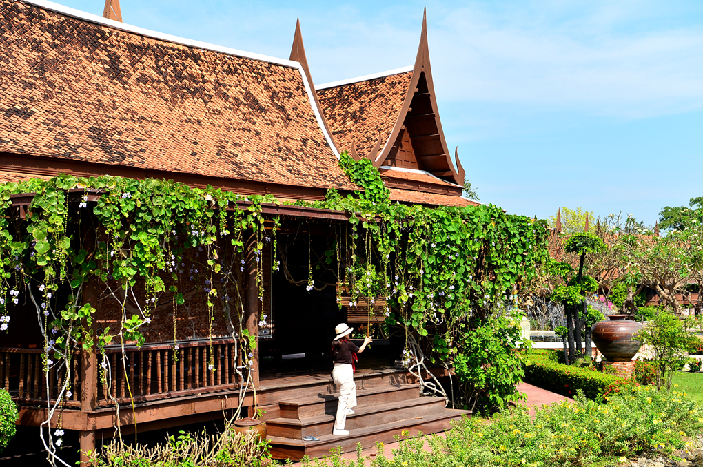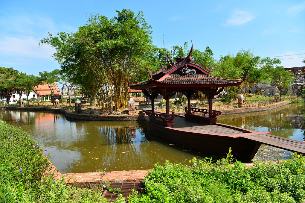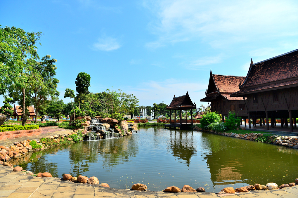연못 주변의 이 건물들은 Khum Khun Phaen 또는 Ruean Thai Ayutthaya 목조 주택으로, 아유타야 시대의 사회와 문화를