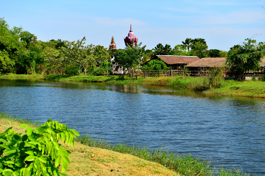 유적들 사이에 만들어 놓은 농가는 북부 태국 마을을 재현해 놓은 것이라고 한다.