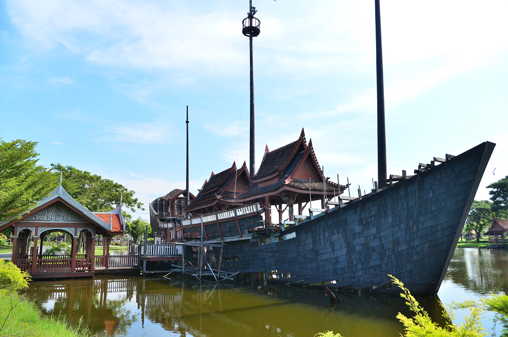이 고대 도시의 타이 정크는 촌부리 사따힙구의 낡은 정크선을 사달라고 부탁한 뒤, 내구성이 있으면서도 낡은 정크선의 모