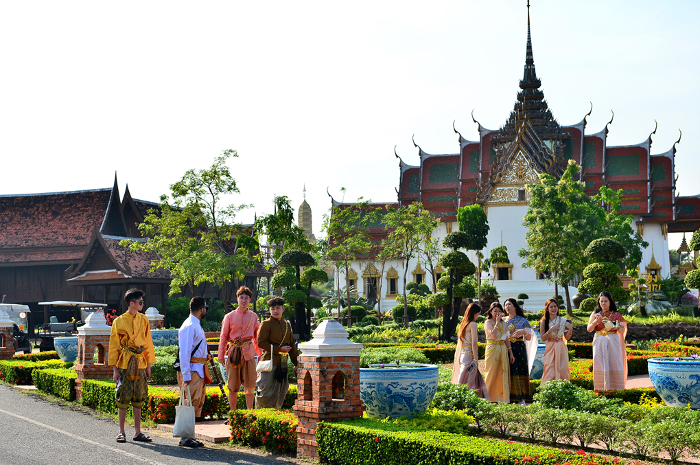 태국의 젊은 청춘들이 그들 고유의 의상을 입고 사진촬영 등을 하며 즐기고 있는 모습이 보기 좋다.