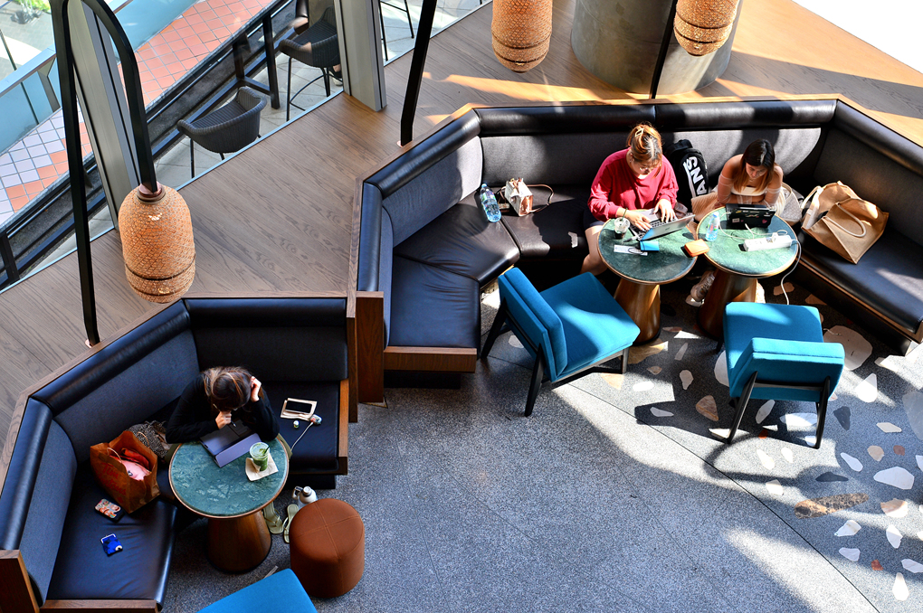 제각기 자리를 잡고 무언가에 열중하고 있는 내방객들의 모습이다.