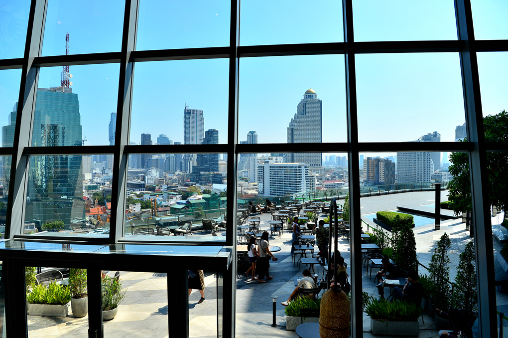 별다방의 위층은 확 트인 전망으로 짜오프라야 강과 함께 강 주변의 모습들을 한눈에 조망해 볼 수 있다.