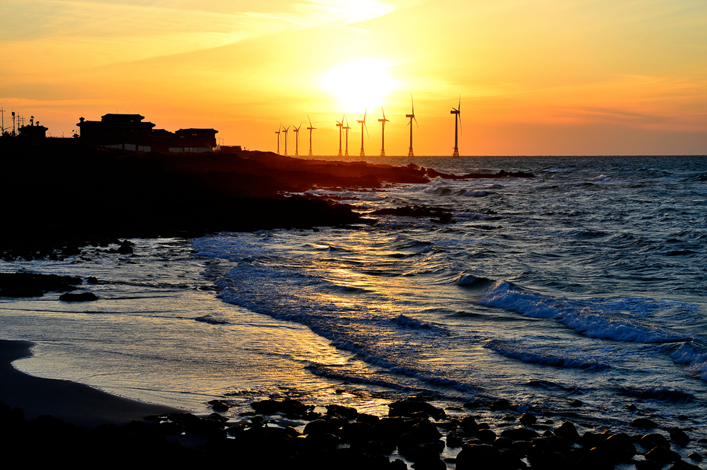 노을과 어우러진 풍력발전기 모습도 아름답기만 했다.