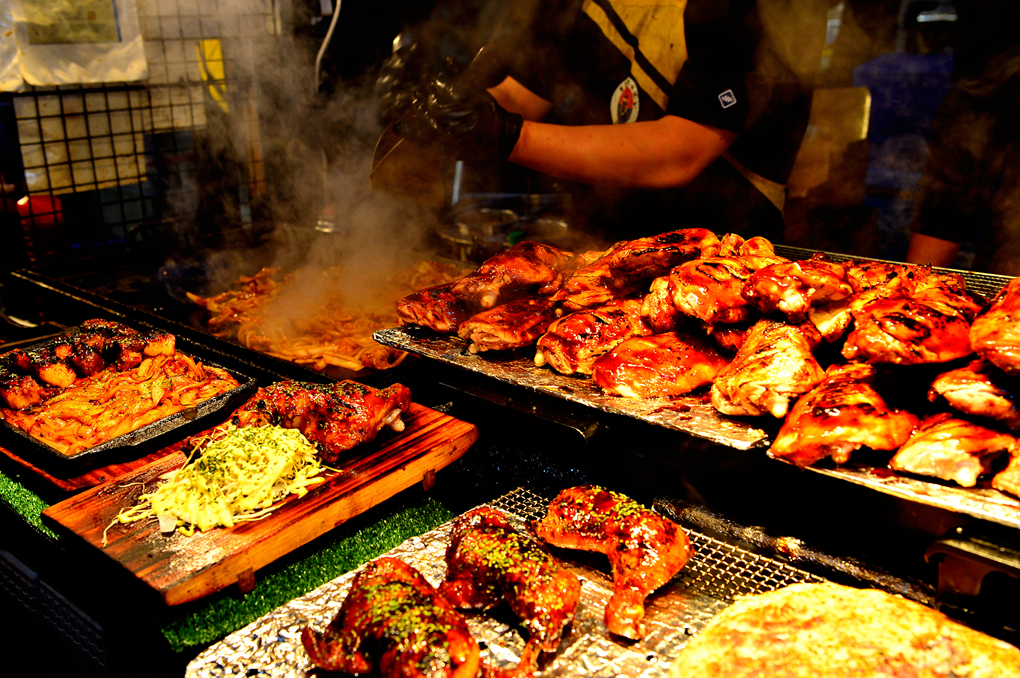 제주 동문시장의 화려한 야시장 모습이다.