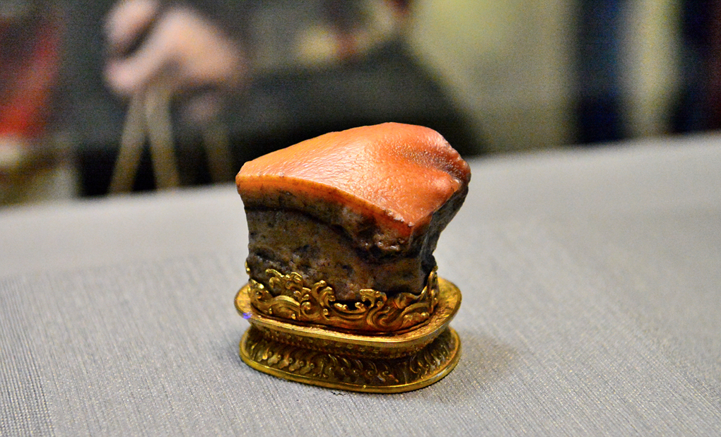 신선하고 육즙이 많은 동파육과 너무나 똑같아서 보는 이들의 입에 침이 고이게 하는 작품이다.