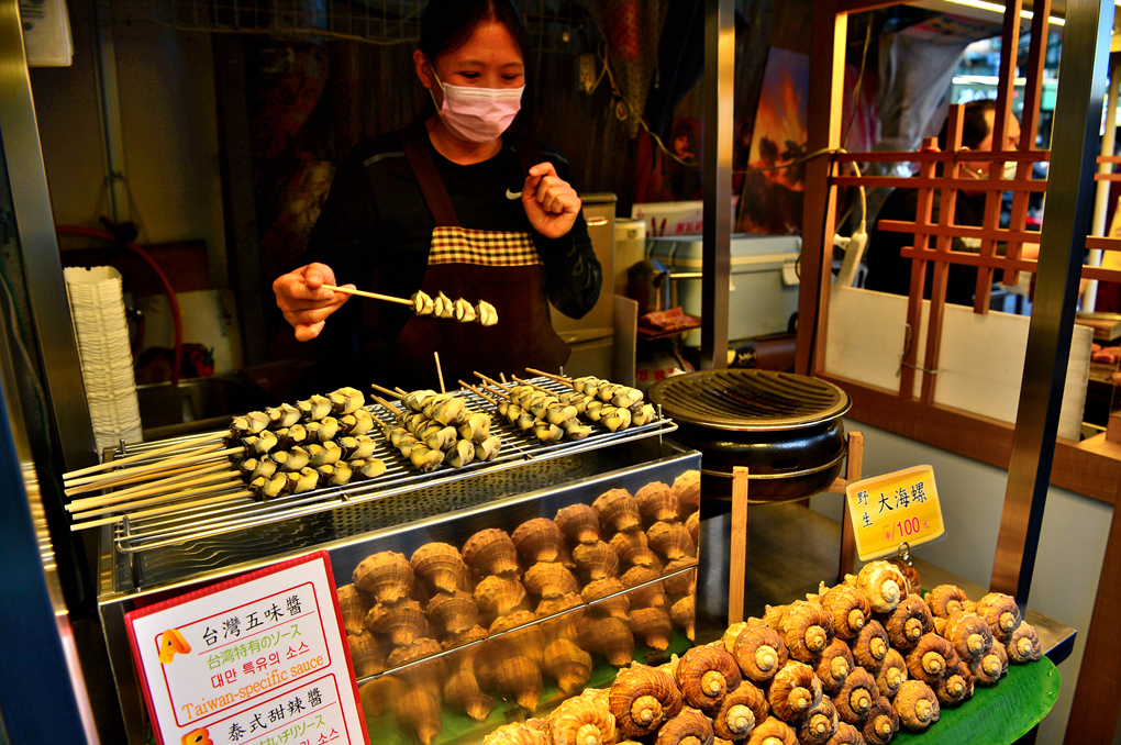 태국 야시장에는 쌀국수 같은 음식이 주종을 이루고 있다면, 이곳 대만의 야시장은 주로 튀기거나 구워 먹는 간식거리가 주