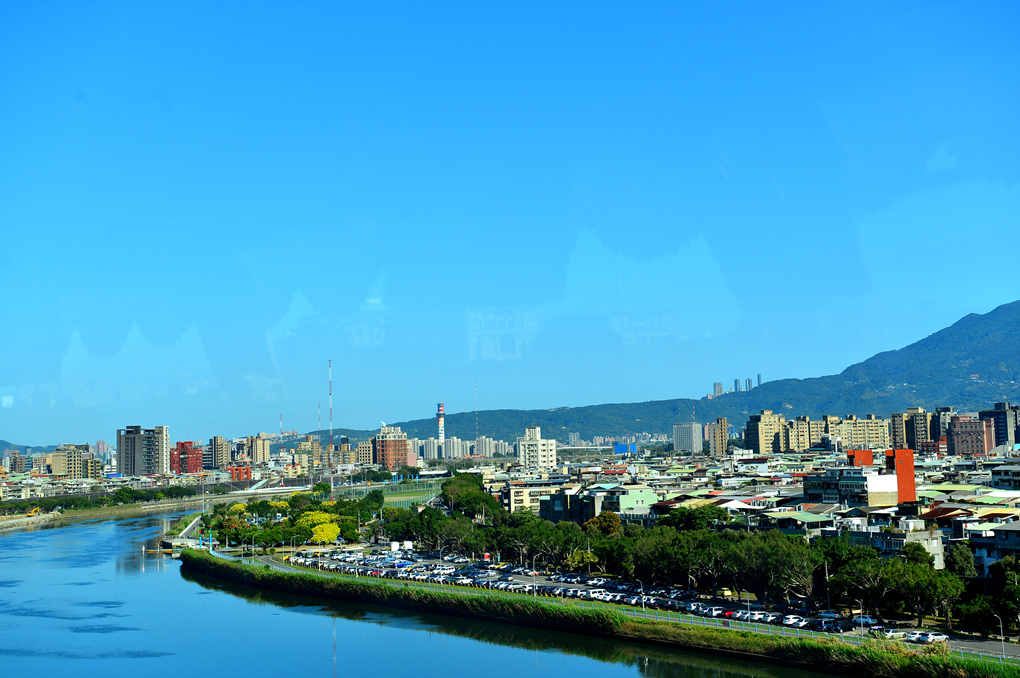 호텔을 나선 투어 버스 차창으로 보이는 타이베이의 강과 골목길 모습이다.