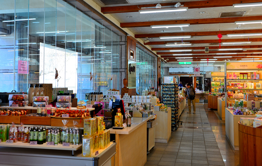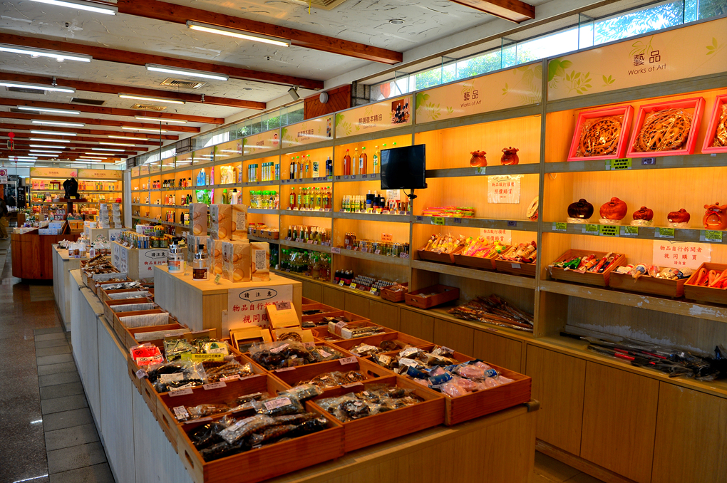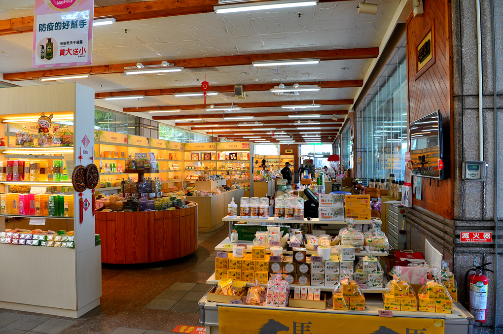 정성스럽게 상품들을 진열해 놓은 휴게소 내부 모습이다.