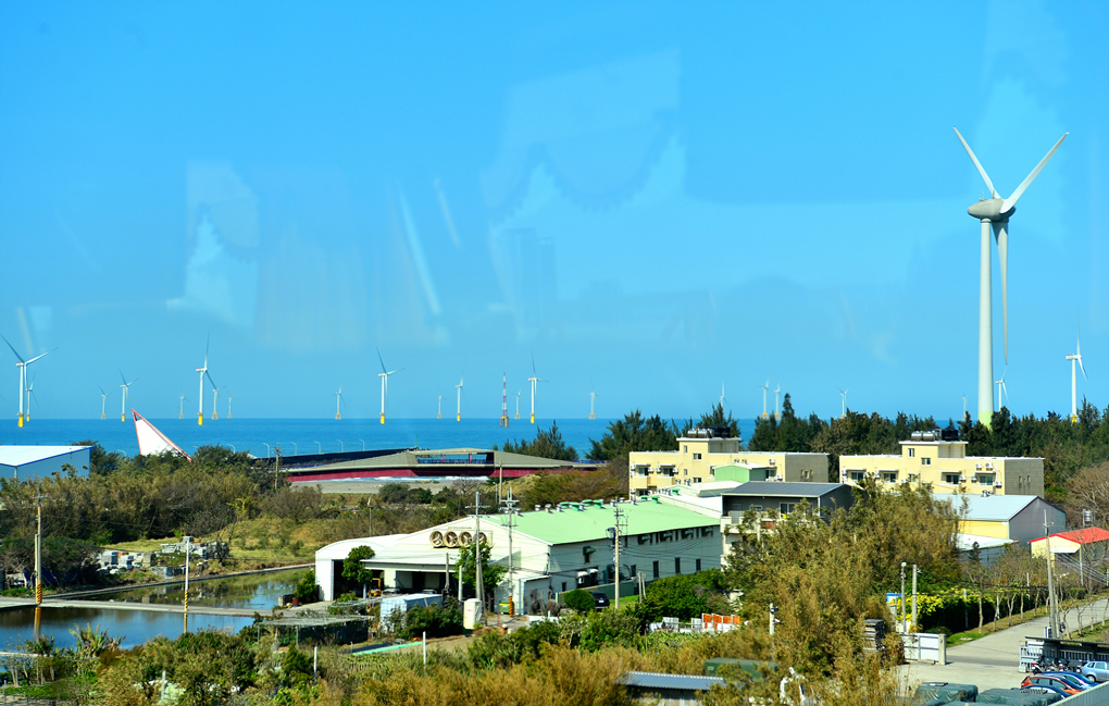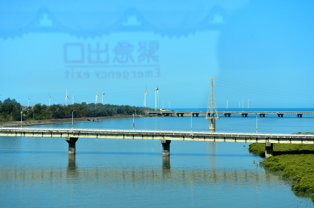 바다 위에 떠있는 수많은 풍력발전기들과 하구를 가로지르는 다리들이 눈에 들어온다.